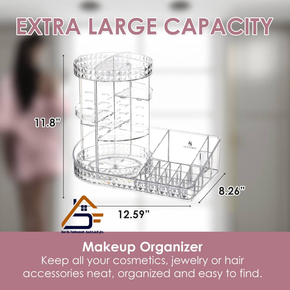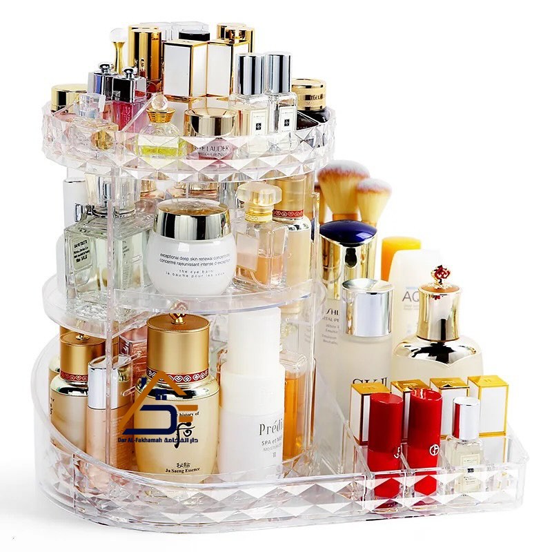 * أقسام منظمة: تحتوي على مساحات تخزين متعددة بأحجام مختلفة لاستيعاب أنواع مختلفة من منتجات المكياج.