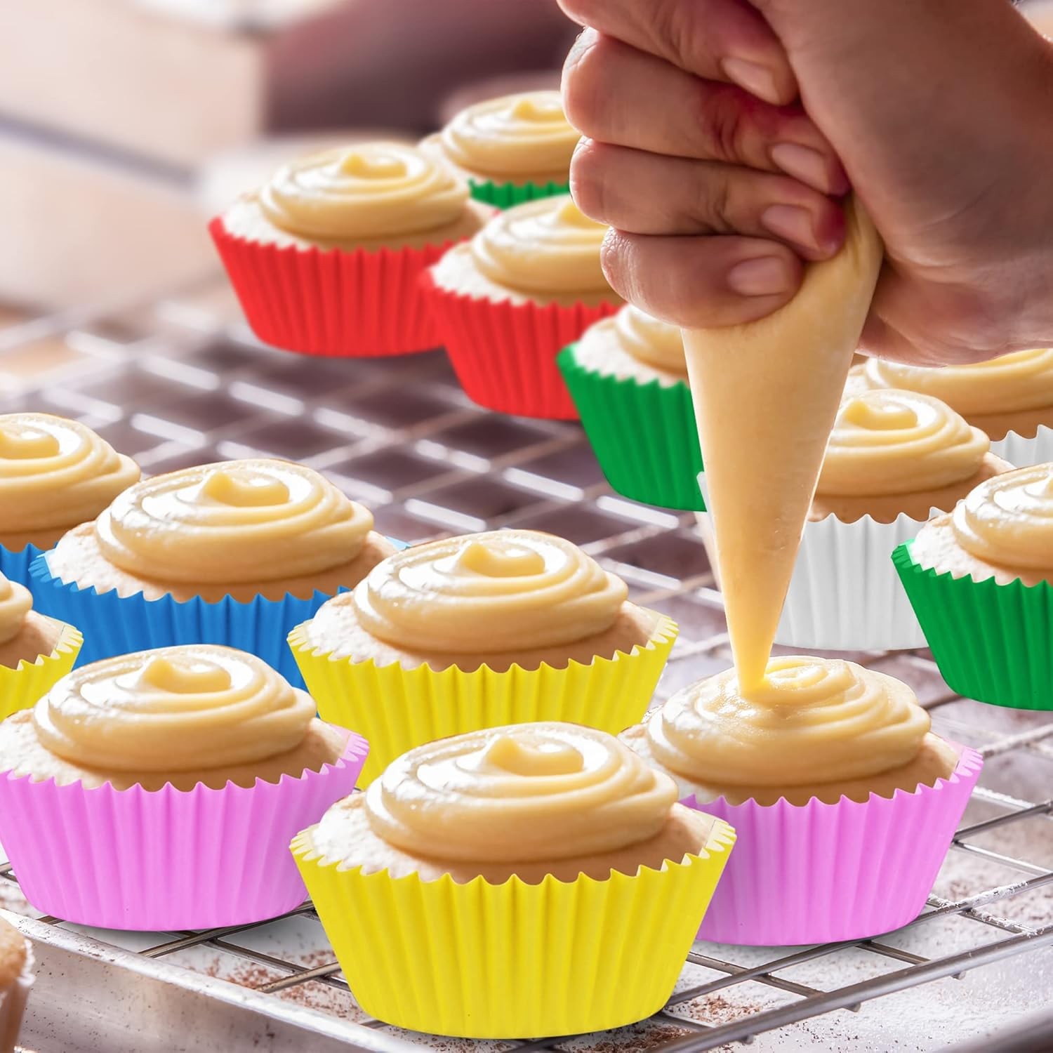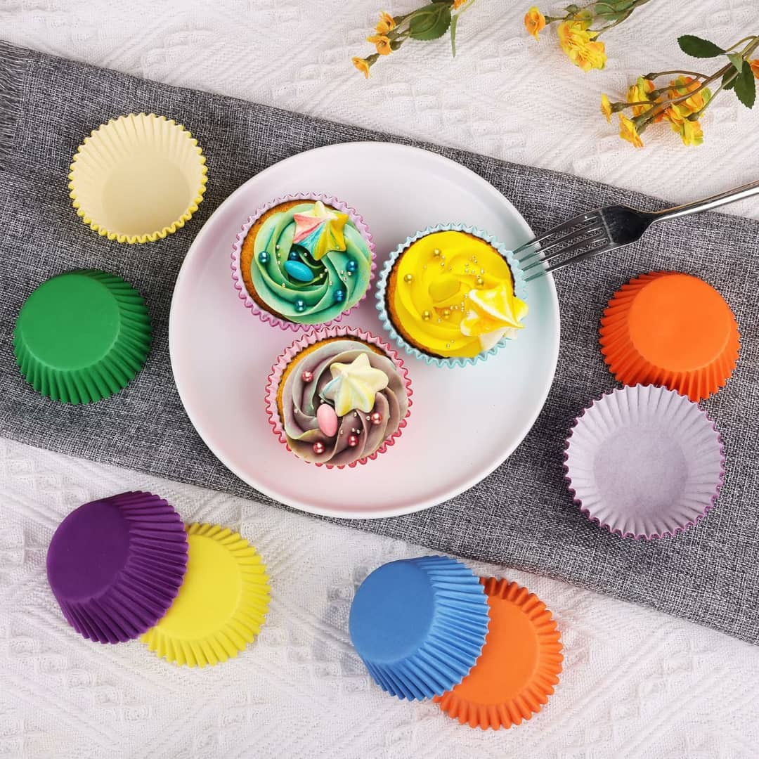 قوالب كب كيك ورقية ملوّنة عالية الجودة تتحمل حرارة الخبز وتحافظ على شكل الحلى. مثالية للكب كيك والمافن والكيك بوب.