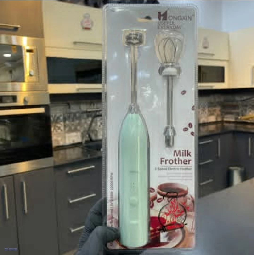 جهاز 2×1 بخاصية خفق البيض والكريمة مع صانع رغوة الكابتشينو. يعمل بالبطارية مع رأسين للخفق، سهل الاستخدام والتنظيف.
