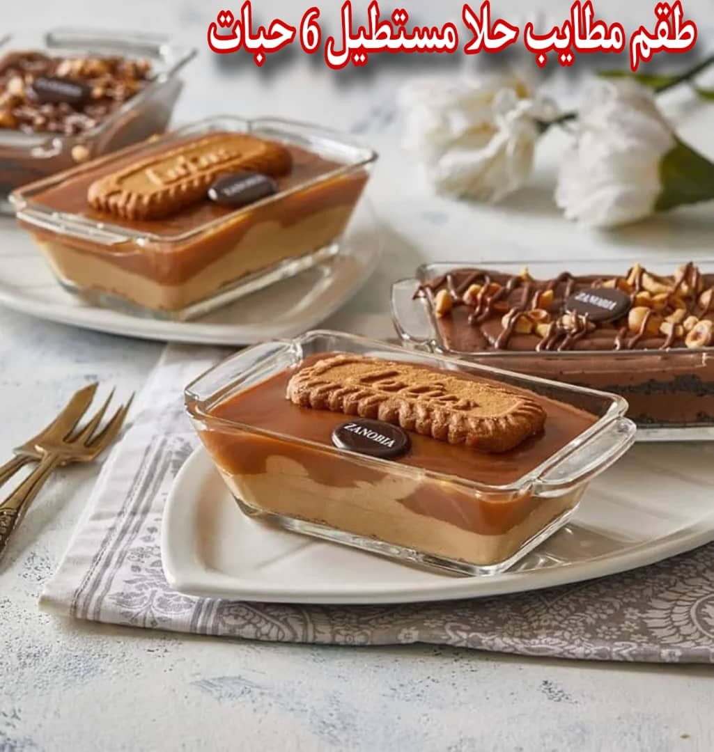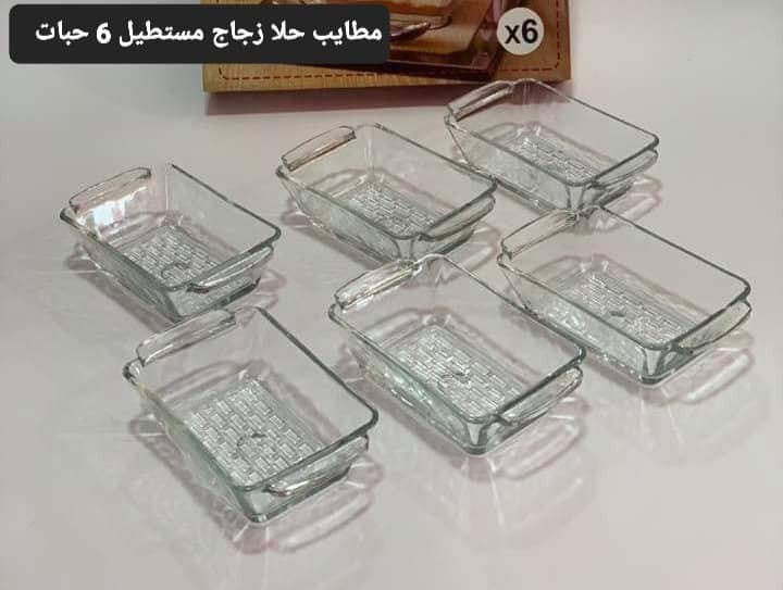 طقم مطايب حلا زجاج 6 حبات (مستطيل + مدور)