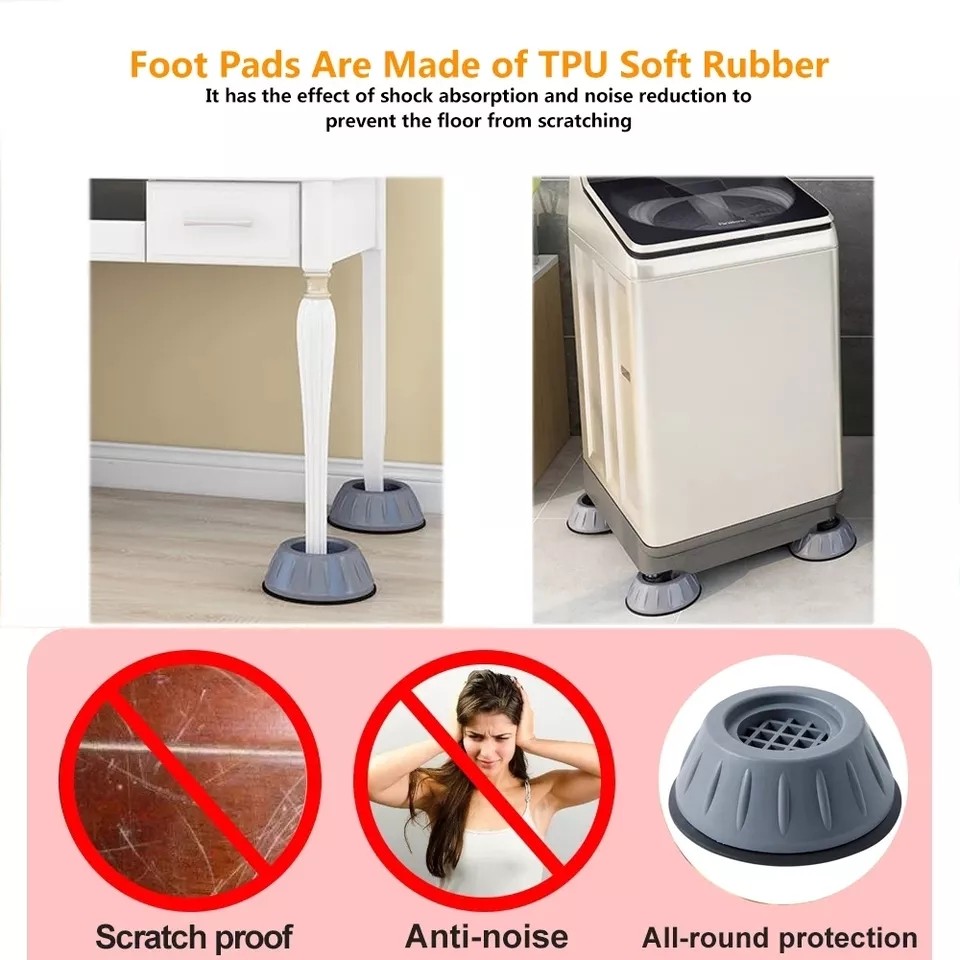 طقم قواعد تثبيت بلاستيكية مع قاعدة رابر مضادة للانزلاق، مناسبة للغسالات والثلاجات والأثاث. تساعد على منع الاهتزاز والانزلاق وتحافظ على الأجهزة.
