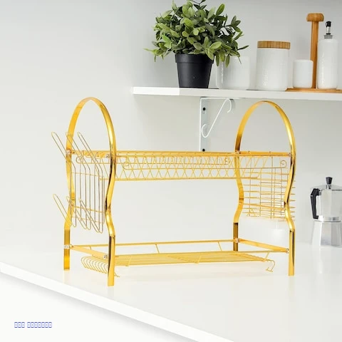 ? حامل تجفيف أطباق – أناقة في مطبخك مع قوة التحمل! تصميم ذهبي فاخر يضيف لمسة ديكور عصرية مصنوع من حديد متين وعالي الجودة – مقاوم للصدأ والاستخدام اليومي يتسع لأطباق وأكواب ومجموعة كاملة من أدوات المطبخ رف جانبي مخصص للكؤوس + مساحة مريحة للأكواب والملاعق قاعدة مستقرة لا تنزلق، وتمنحك تنظيم أنيق وفعّال السعر: فقط