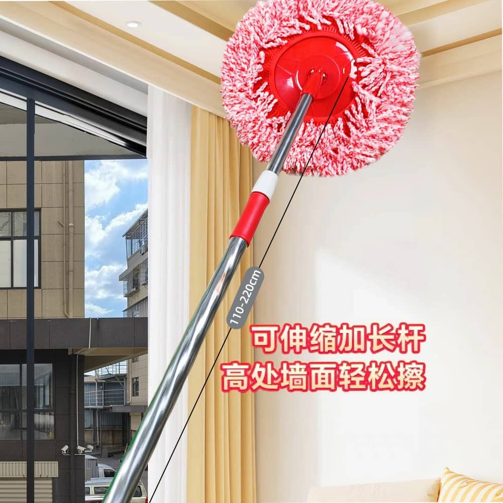 ممسحة أرضيات دوارة بتصميم مثلث أو دائري مع عصارة ستيل قابلة للتمديد حتى 2.5 متر. مناسبة لتنظيف الأرضيات، النوافذ، والزوايا الضيقة. خفيفة وسهلة الاستخدام.