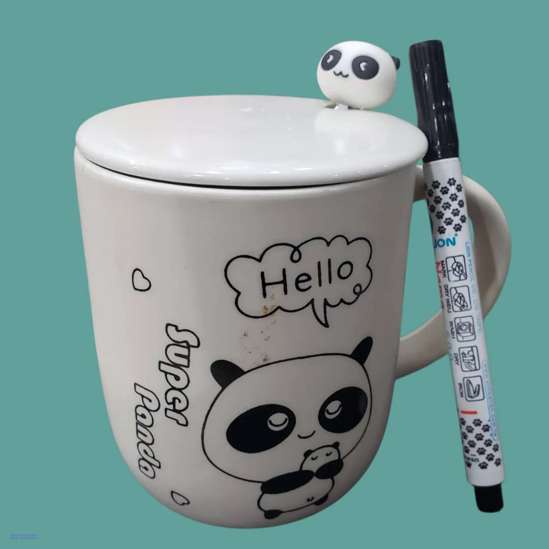 كوب باندا, كوب سيراميك, كوب كرتوني, أكواب قهوة, كوب مع غطاء, كوب مع ملعقة, هدايا لطيفة, مطبخ يمني