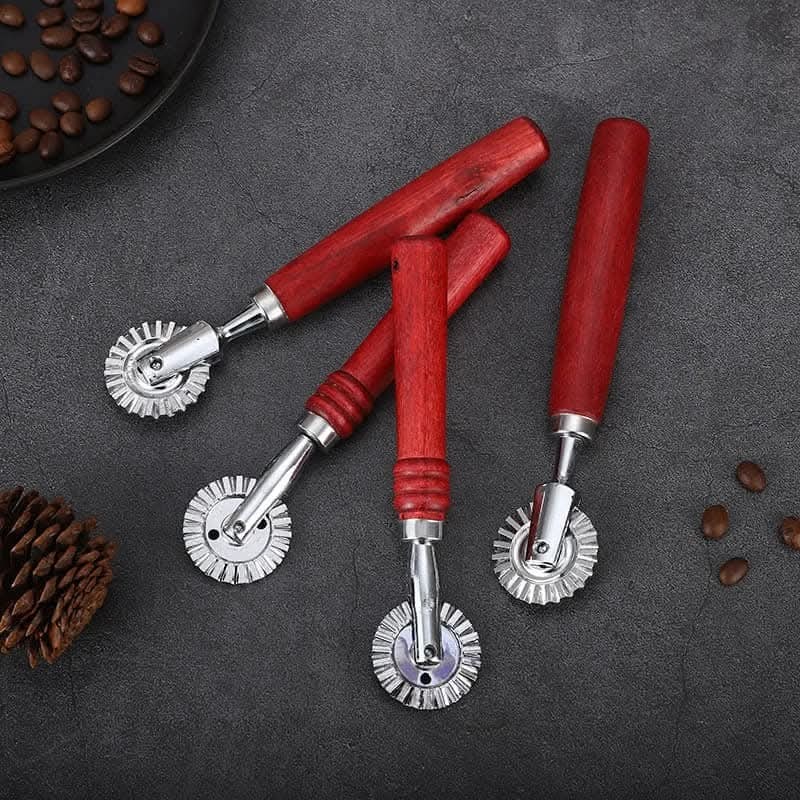 ? **حواف مشرّمة:** عجلة مخددة تمنحك تقطيعًا زخرفيًا رائعًا للمعجنات والرافيولي والفطائر
