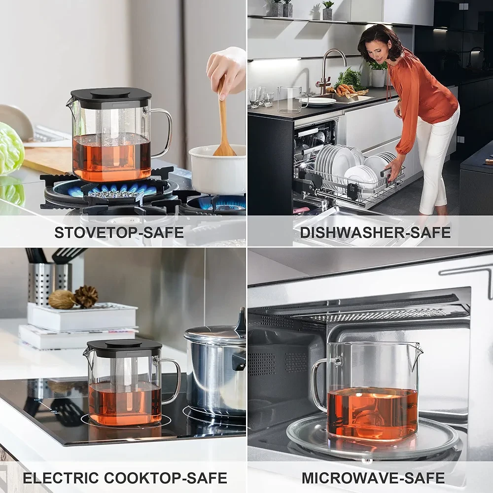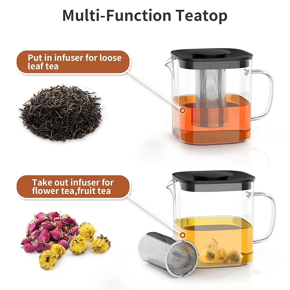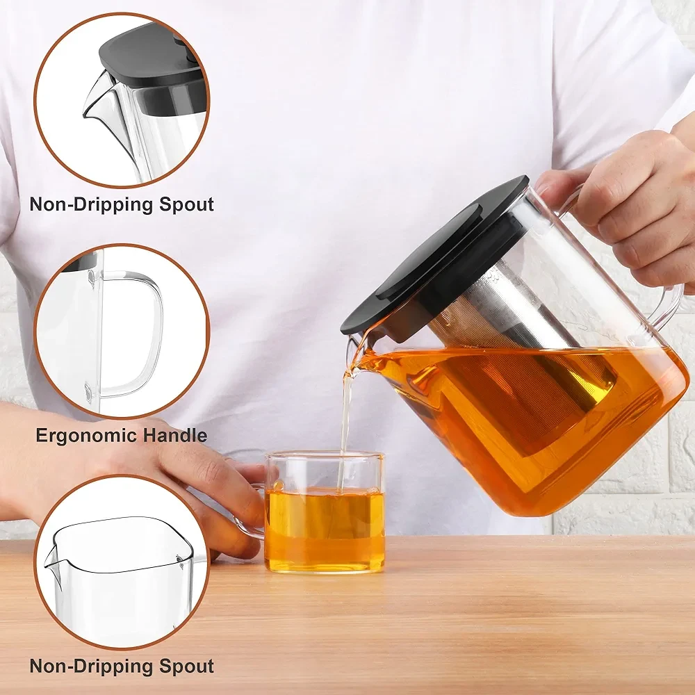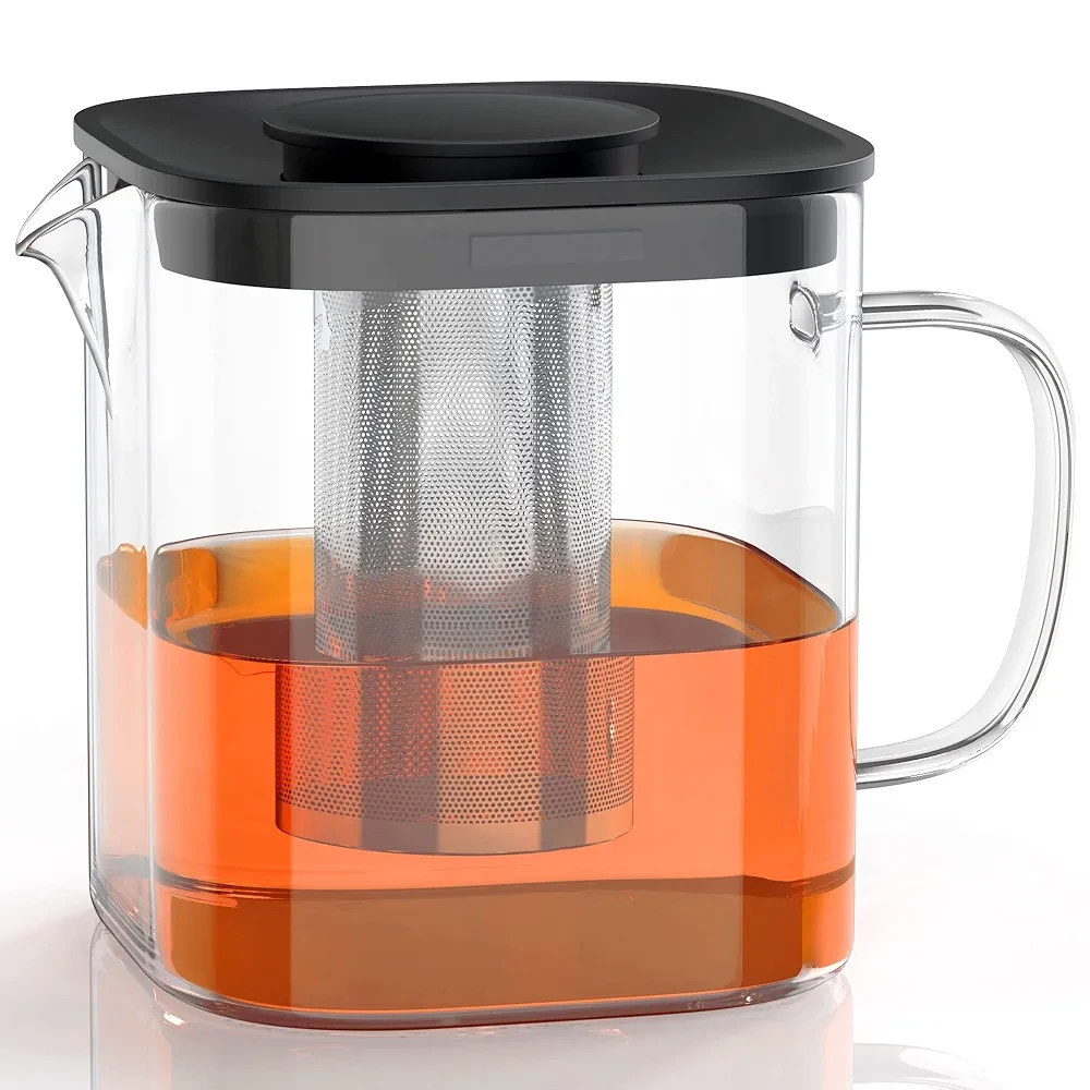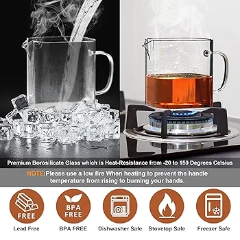 كتلي زجاجي حراري بغطاءمع مصفاه ستيل مدمجه مع 6 اكواب