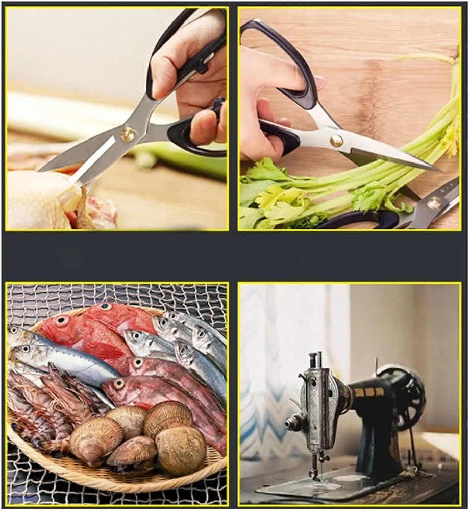 مقص متين من الستانلس ستيل، حاد وسهل الاستخدام في المطبخ أو البيت.