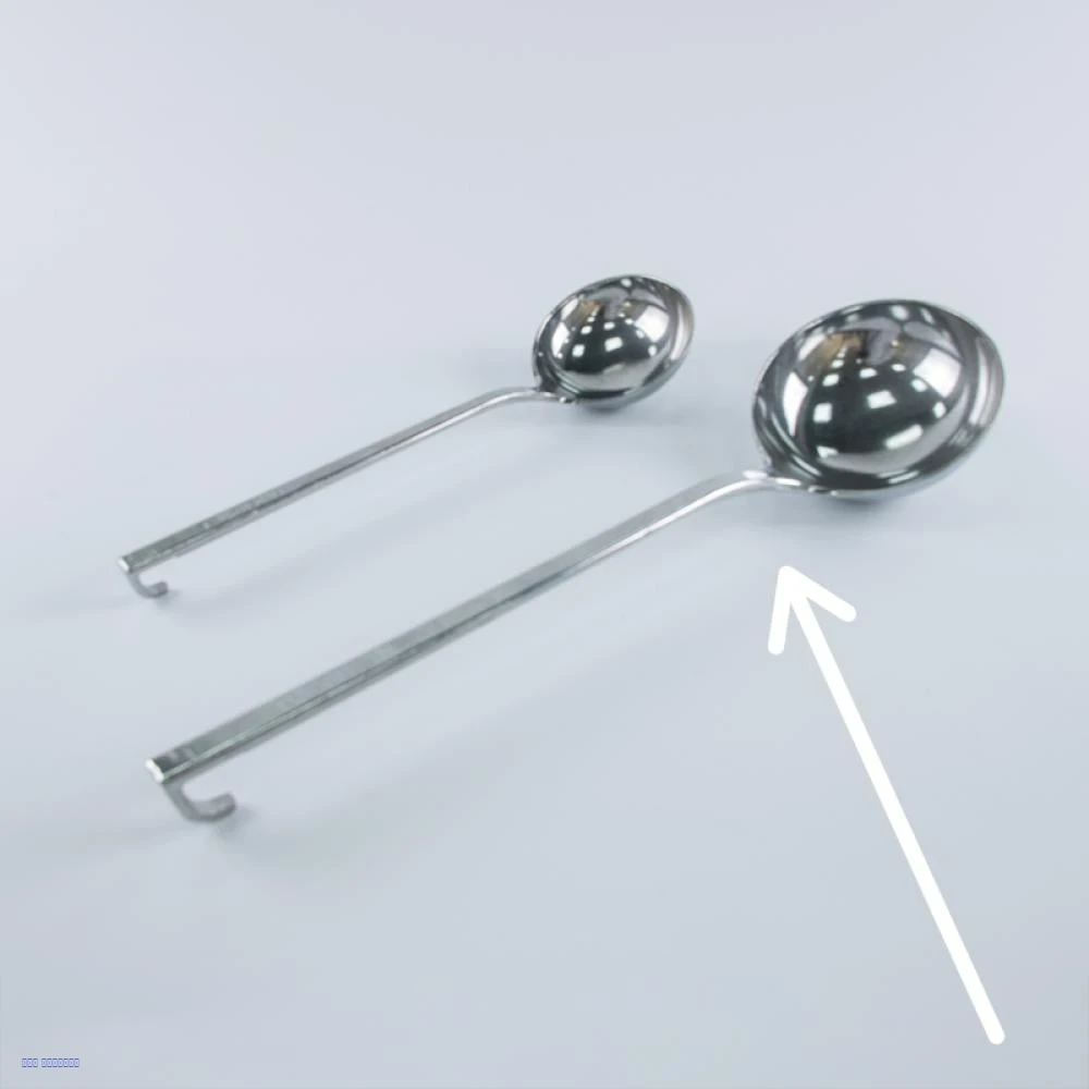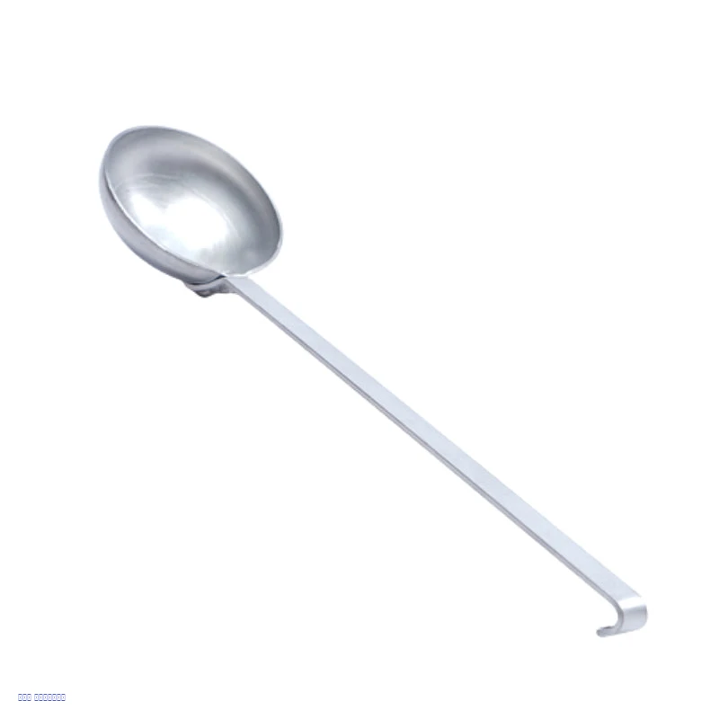 ملعقة غرف متينة مصنوعة من المعدن اللامع، مثالية لتقديم المرق والشوربة بسهولة وأناقة في المطبخ.
