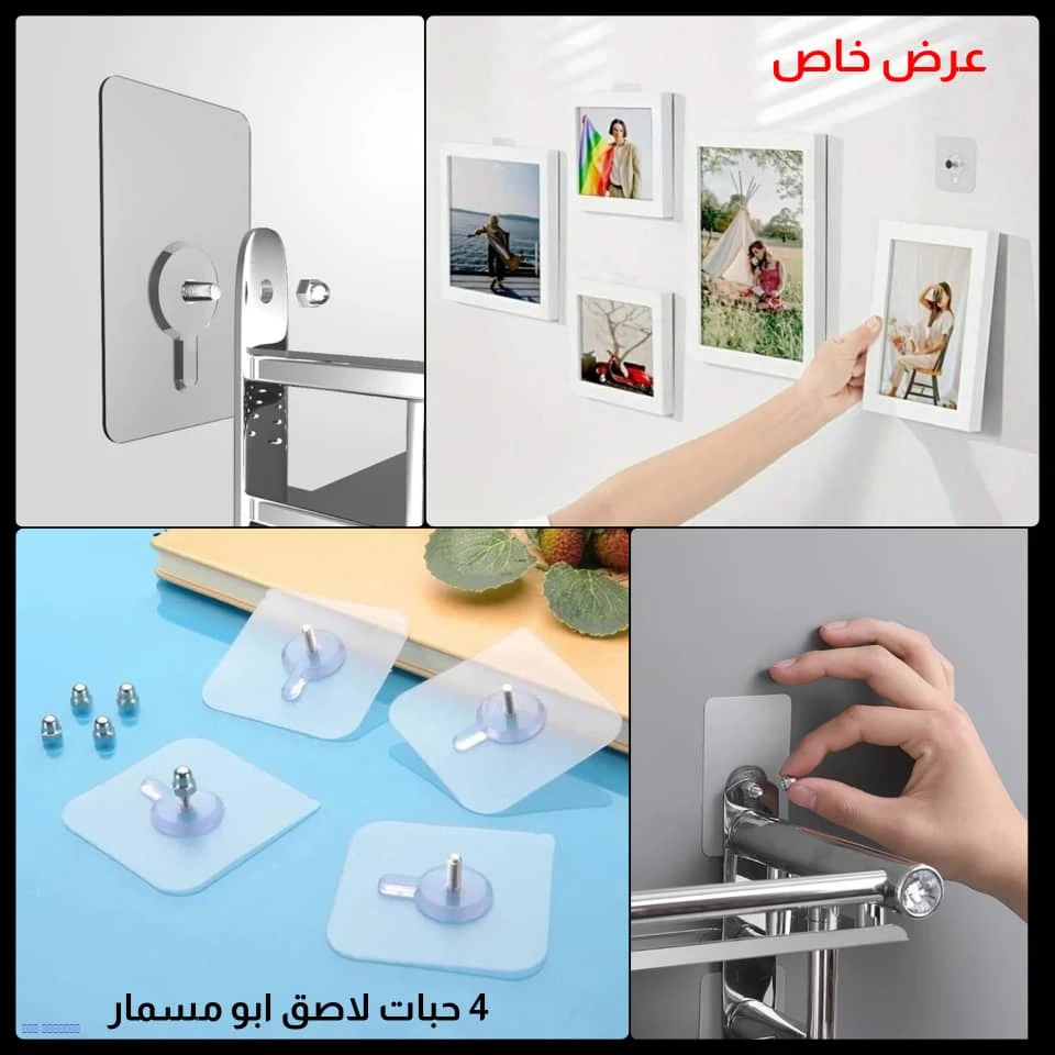 بدون ثقوب: قاعدة لاصقة شفافة قوية جداً تغنيك عن المسمار التقليدي.
