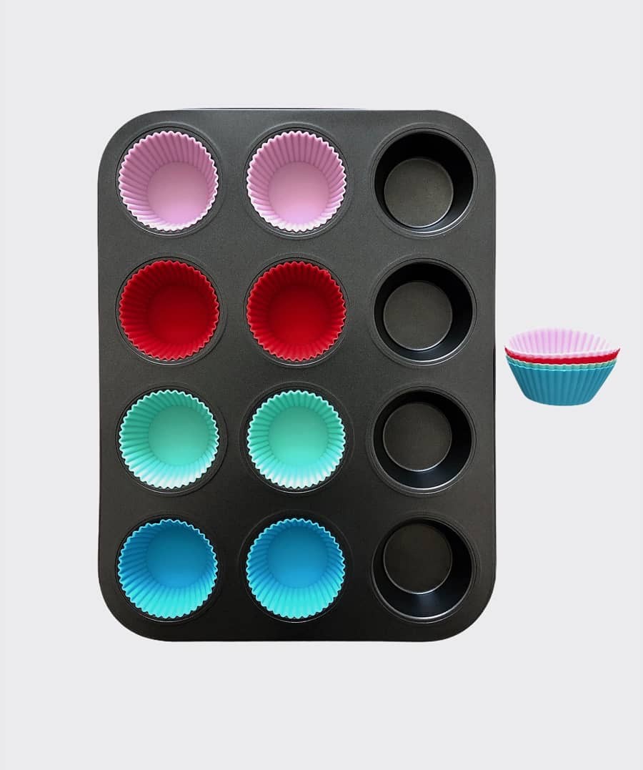 استمتع بتجربة خبز فريدة مع *صحن كب كيك ذو 12 فتحة، مصحوب بـ 12 حبة ورق كب كيك سليكون* قابلة لإعادة الاستخدام! ?✨