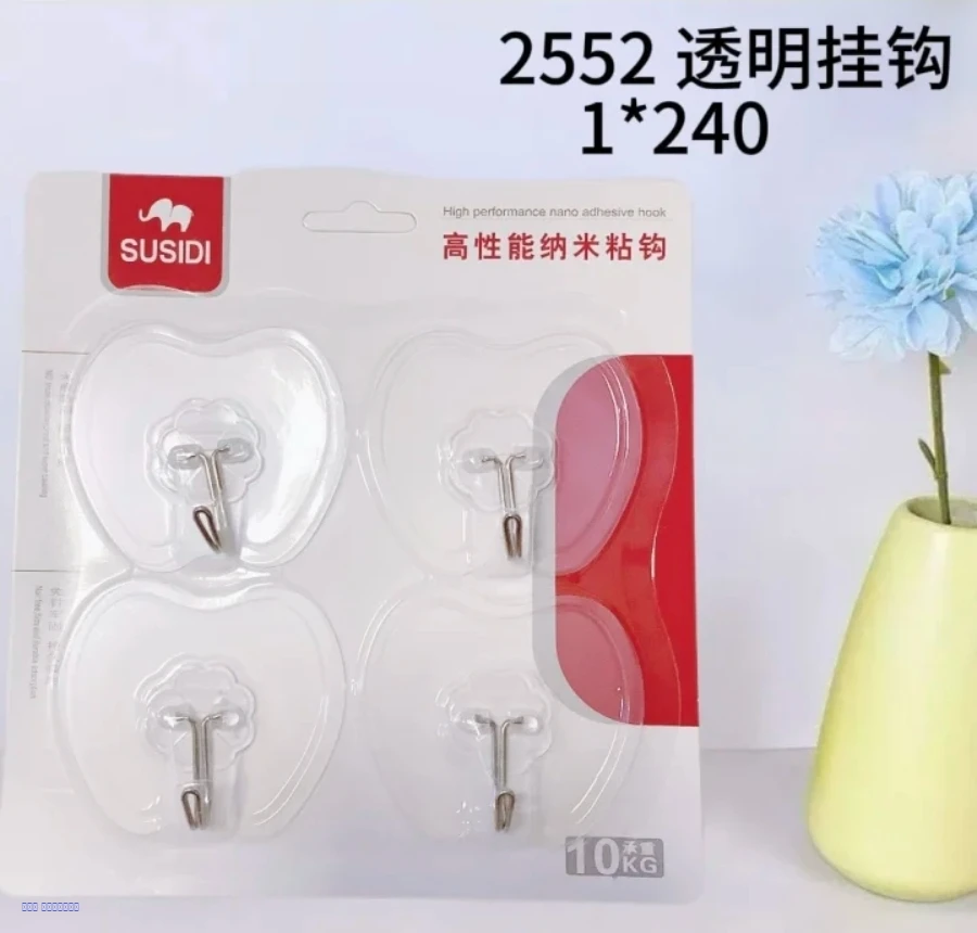 خطافات جدارية شفافة بلاصق قوي بدون حفر أو مسامير، مصنوعة من ستيل متين لتعليق الأغراض اليومية بسهولة وأناقة.