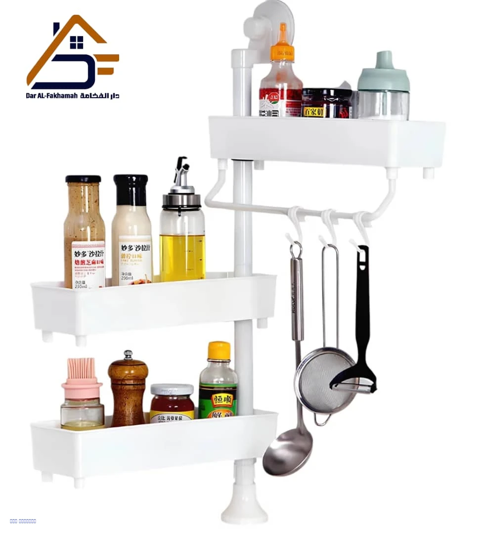 ✅ يدور بسهولة للوصول لجميع الأغراض ✅ تركيب بلا حفر مع لاصق ثابت ✅ خطافات جانبية لتعليق الأدوات ✅ تصميم أنيق يوفر المساحة