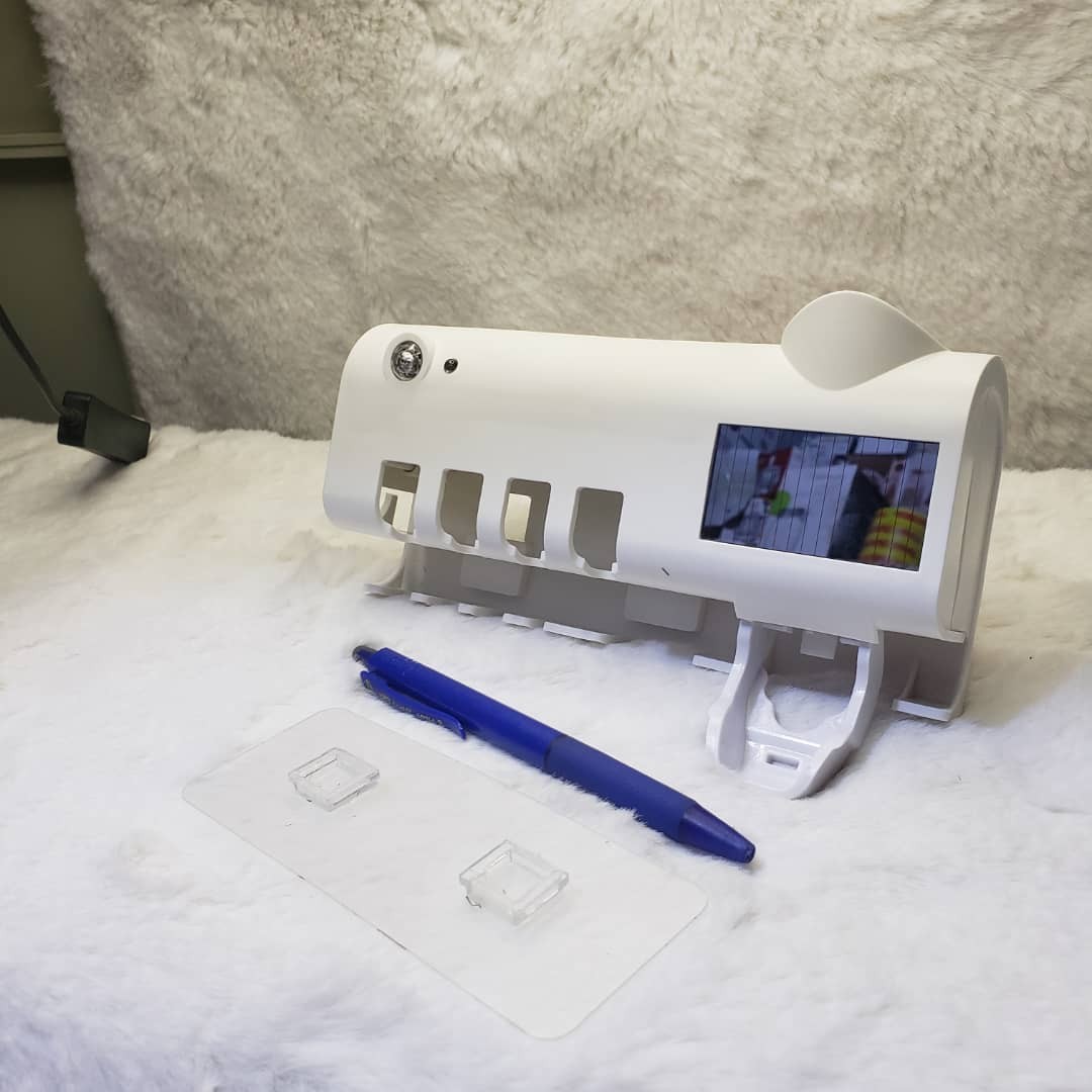 حامل فرش أسنان جداري بتقنية تعقيم بالأشعة فوق البنفسجية يقضي على البكتيريا. يتسع لـ 4 فرش ومعجون، تركيب لاصق سهل.