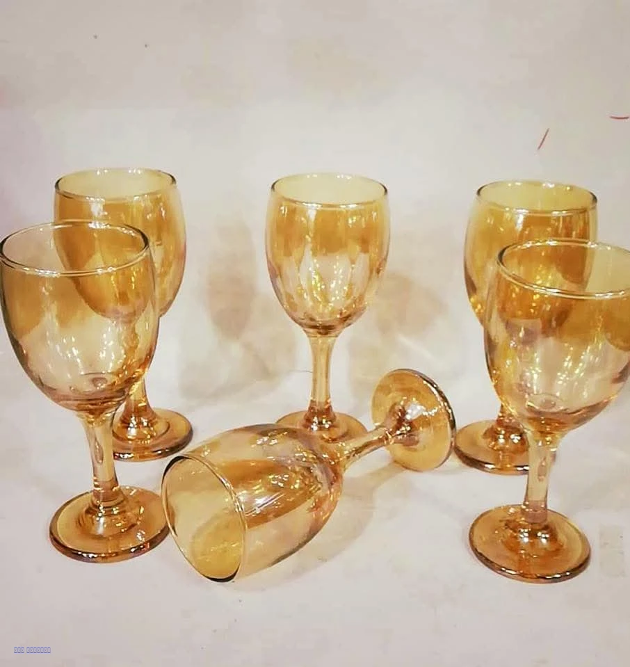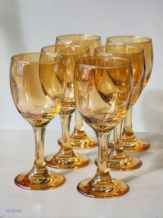 طقم كاسات زجاجية فاخرة بلون ذهبي أنيق، عددها 6 قطع بجودة عالية ولمعة جذابة. مثالية للمناسبات الراقية.