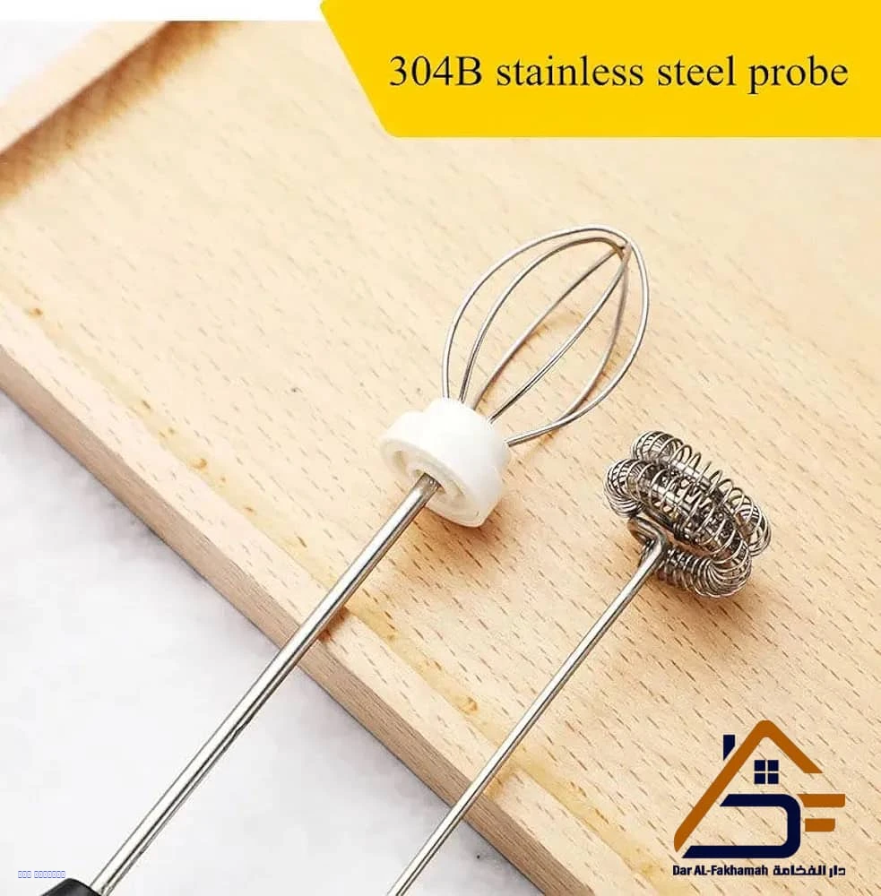 جهاز 2×1 بخاصية خفق البيض والكريمة مع صانع رغوة الكابتشينو. يعمل بالبطارية مع رأسين للخفق، سهل الاستخدام والتنظيف.