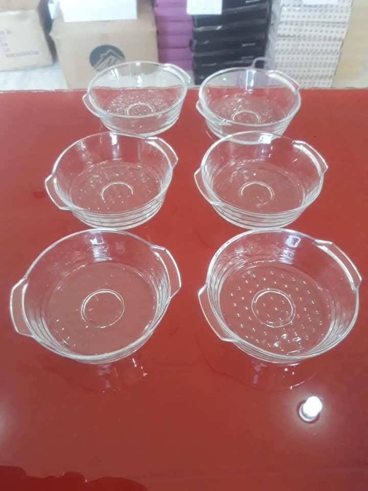 طقم مطايب حلا زجاج 6 حبات (مستطيل + مدور)