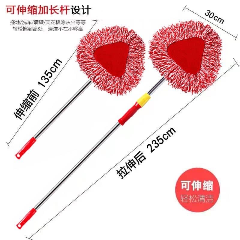 ممسحة أرضيات دوارة بتصميم مثلث أو دائري مع عصارة ستيل قابلة للتمديد حتى 2.5 متر. مناسبة لتنظيف الأرضيات، النوافذ، والزوايا الضيقة. خفيفة وسهلة الاستخدام.