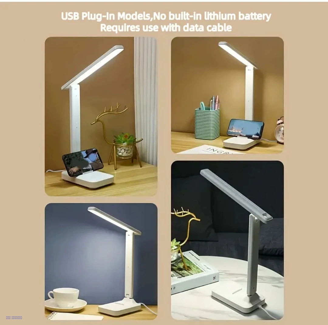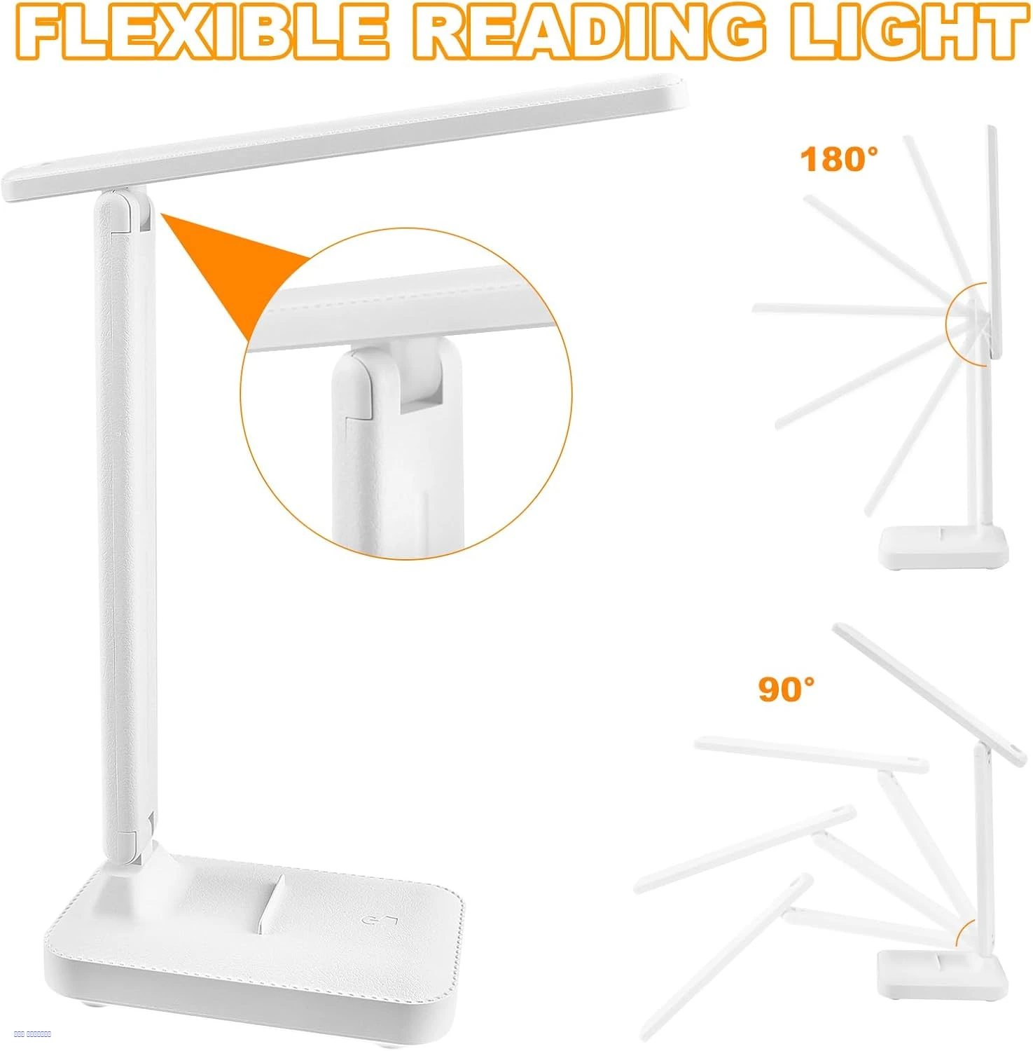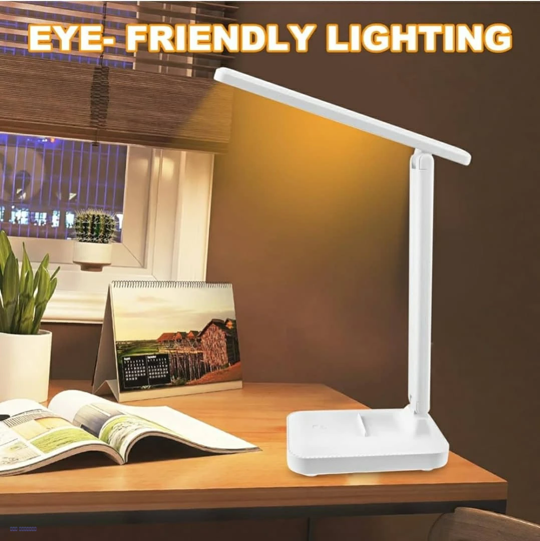 مصباح مكتبي بتصميم أنيق يحمي العين، بثلاثة ألوان إضاءة مع تحكم باللمس، منفذ USB للشحن، وقابل للانحناء. مثالي للمكاتب وغرف النوم.