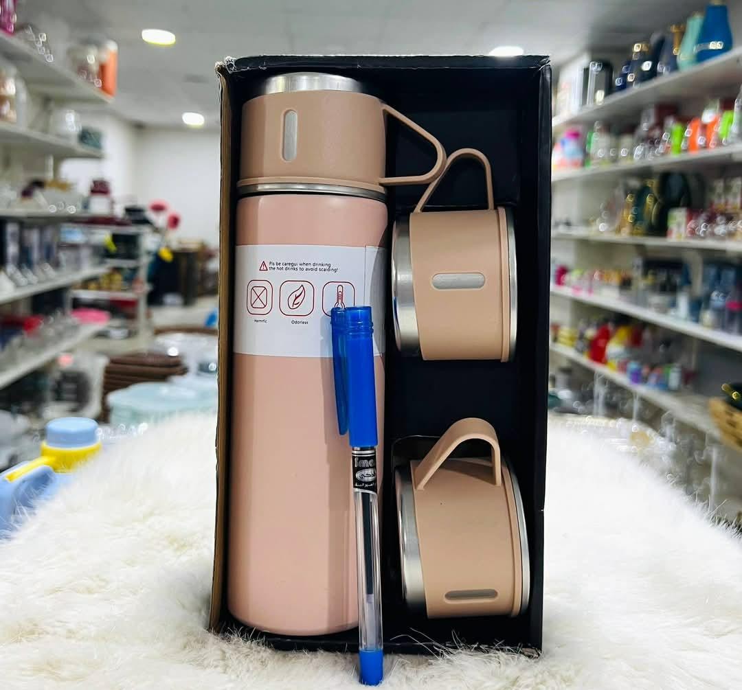 زمزمية عالية الجودة 500 مل مع كوبين من الفولاذ المقاوم للصدأ. تحافظ على الحرارة والبرودة لساعات، مثالية للعمل والسفر والهدايا.