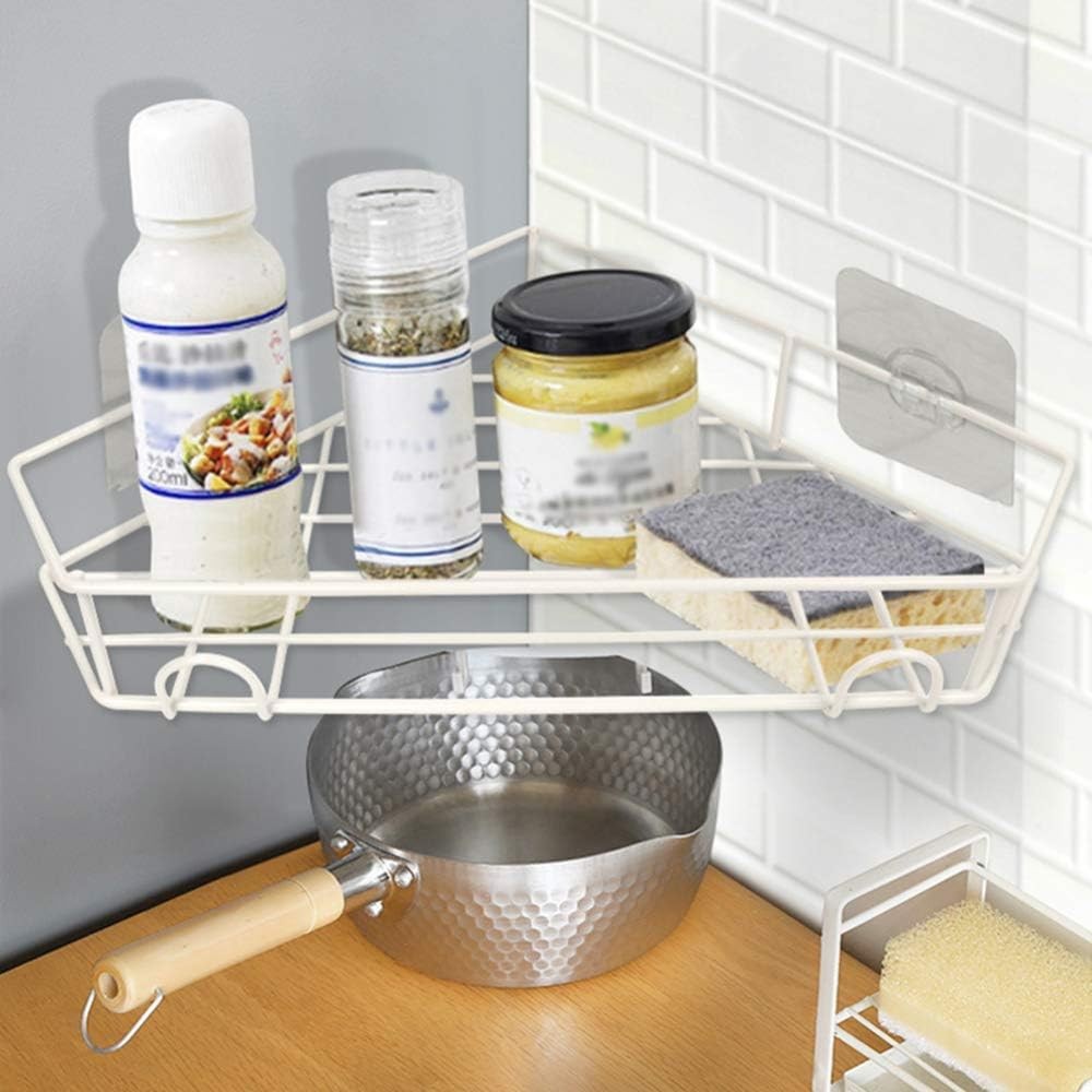 زاوية جداريه بتصميم ماسي أنيق لتنظيم الحمام أو المطبخ. مصنوعة من مواد متينة وتتحمل الأوزان، سهلة التركيب بدون مسامير.
