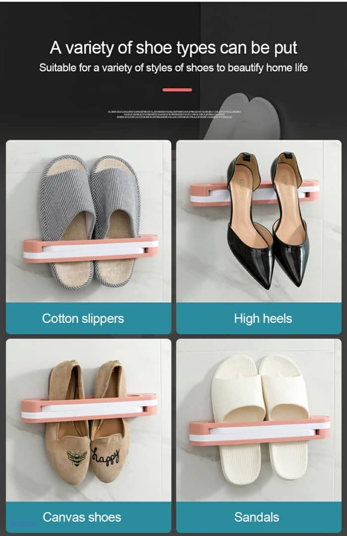 حامل جداري بلاستيكي متعدد الوظائف، يتميز بتصميم قابل للطي لتوفير المساحة. يمكن استخدامه للأحذية (3 أزواج) أو كشماعة للمناشف والملابس في الحمام والمطبخ بدون حفر أو مسامير.