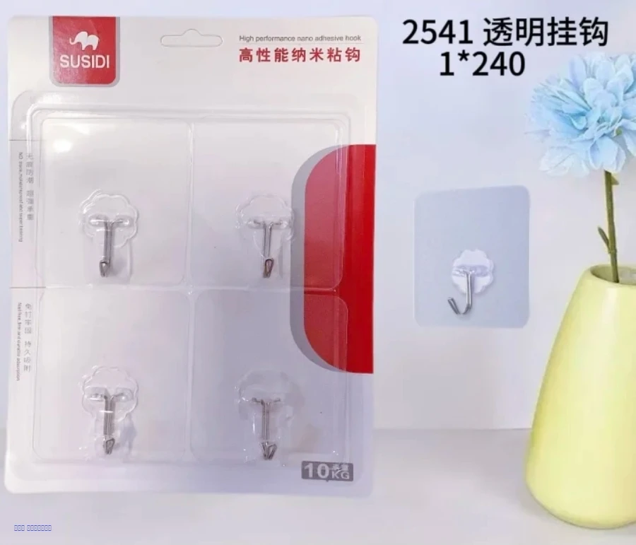 خطافات جدارية شفافة بلاصق قوي بدون حفر أو مسامير، مصنوعة من ستيل متين لتعليق الأغراض اليومية بسهولة وأناقة.